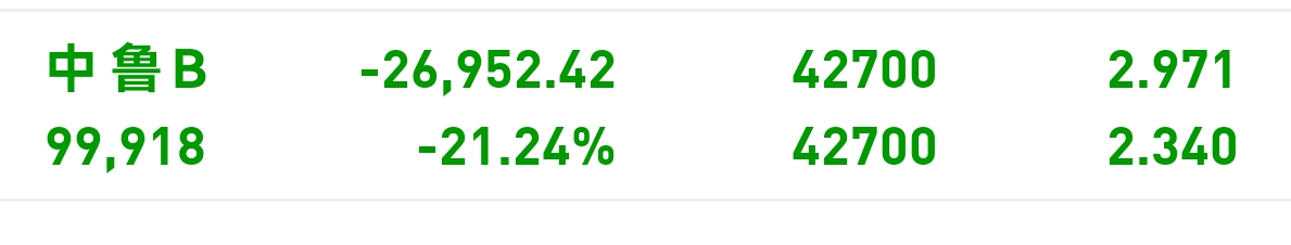 中鲁b亏损20%多,套一年多了。你们是不是都被我抬着轿子呢?