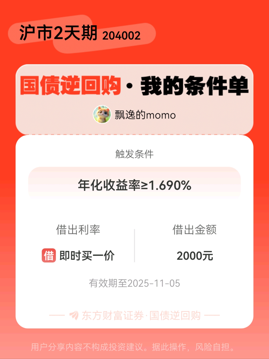 #条件单交流# #国债逆回购晒单# 一位股神设置了一个国债逆回购条件单,接下来就是见证奇迹的时刻~$GC002(SH204002)$