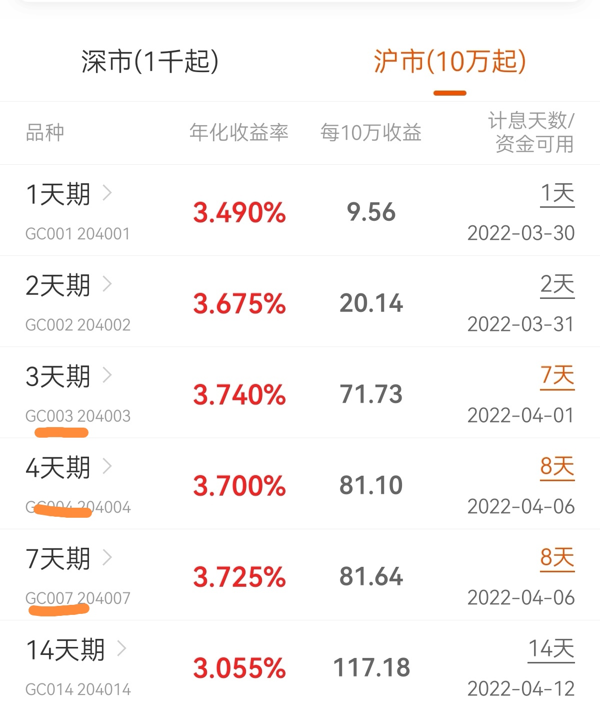 $GC004(SH204004)$今天适合选择做沪市里3天期、4天期、7天期,这