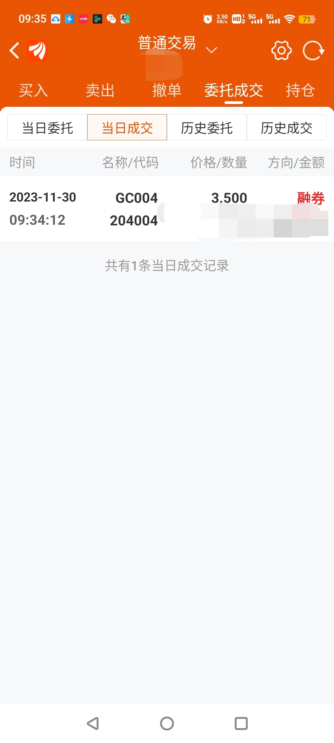 $GC004(SH204004)$ 在今天,先以3.5的年化收益率先借出1笔资金了。