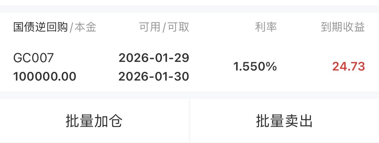 $GC007(SH204007)$ 第一次购买,10w,7天才24块的利息吗?有没有懂的大哥帮我讲解一下