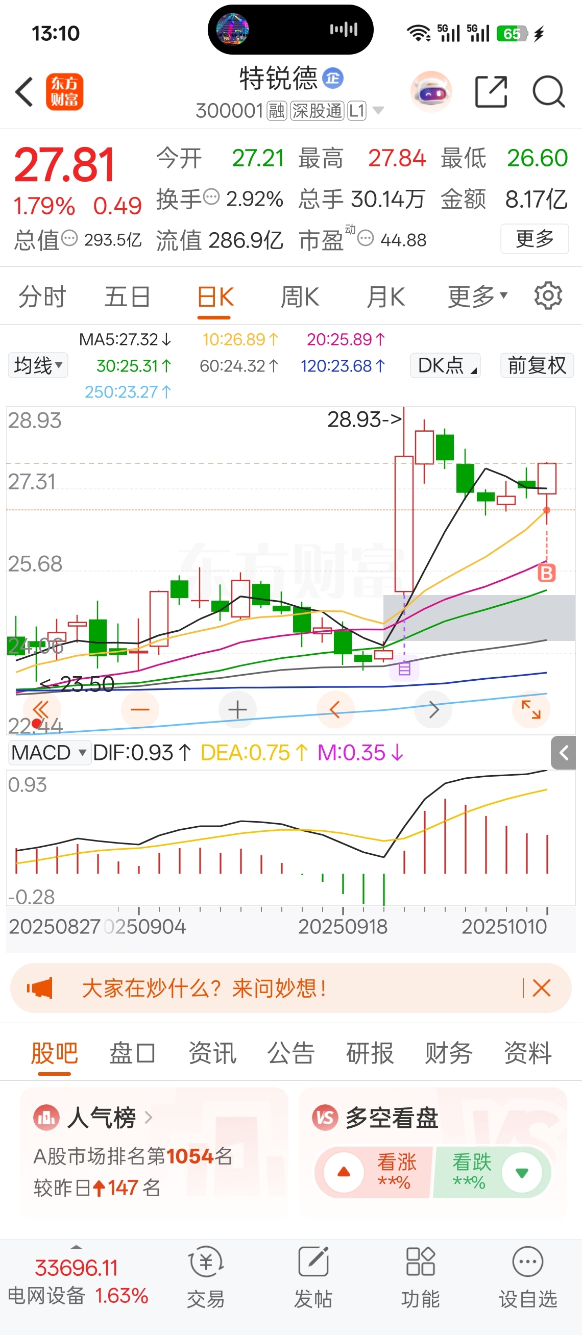 $特锐德(SZ300001)$ 在趋势面前,空头不过是螳臂当车,不自量力,观察了七个交易日,终于可以启动二波了,满仓干