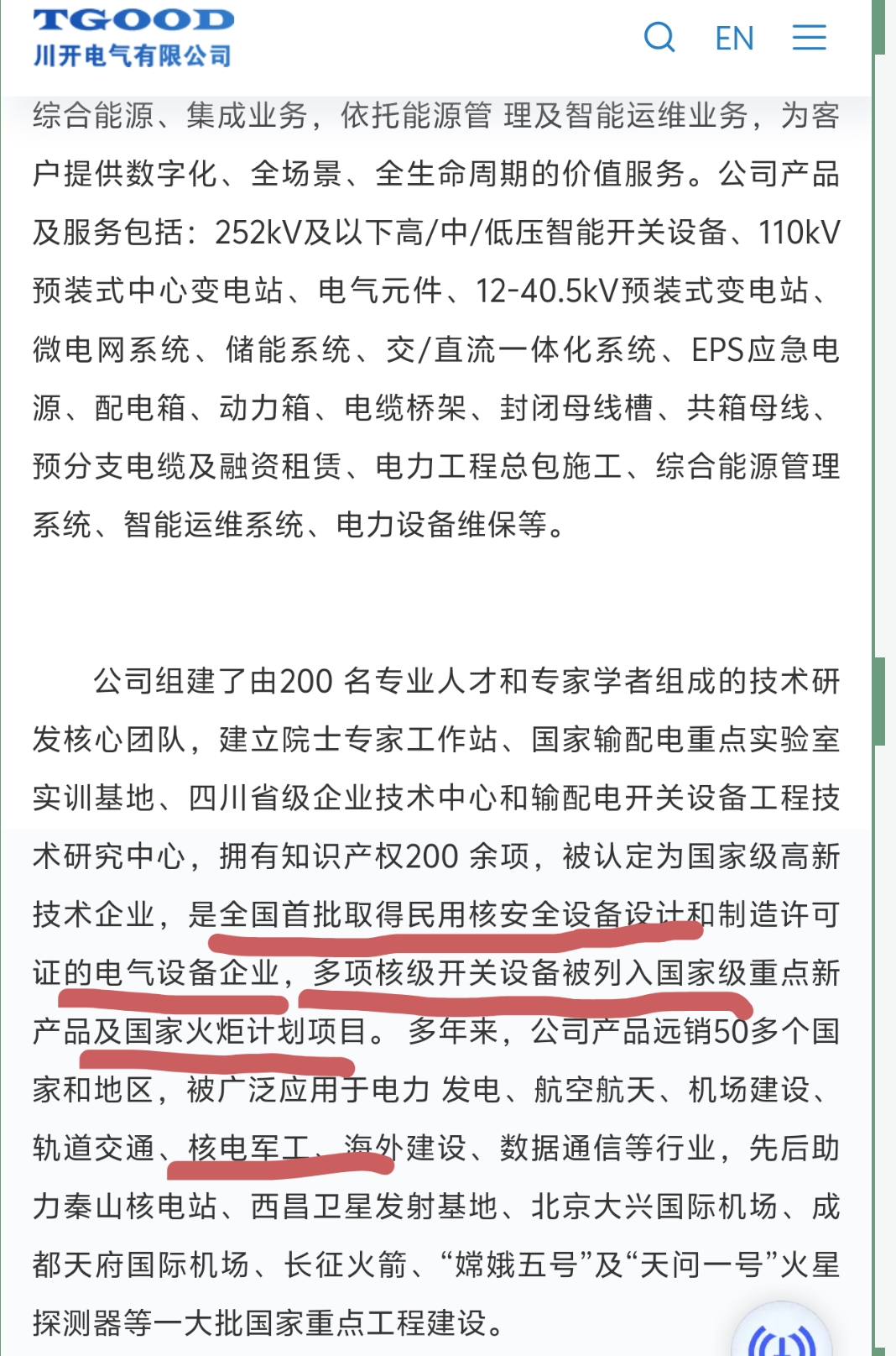 $特锐德(SZ300001)$ 特锐德川开电气全国首批取得核安全设备设计和制造许可的电气设备企业。