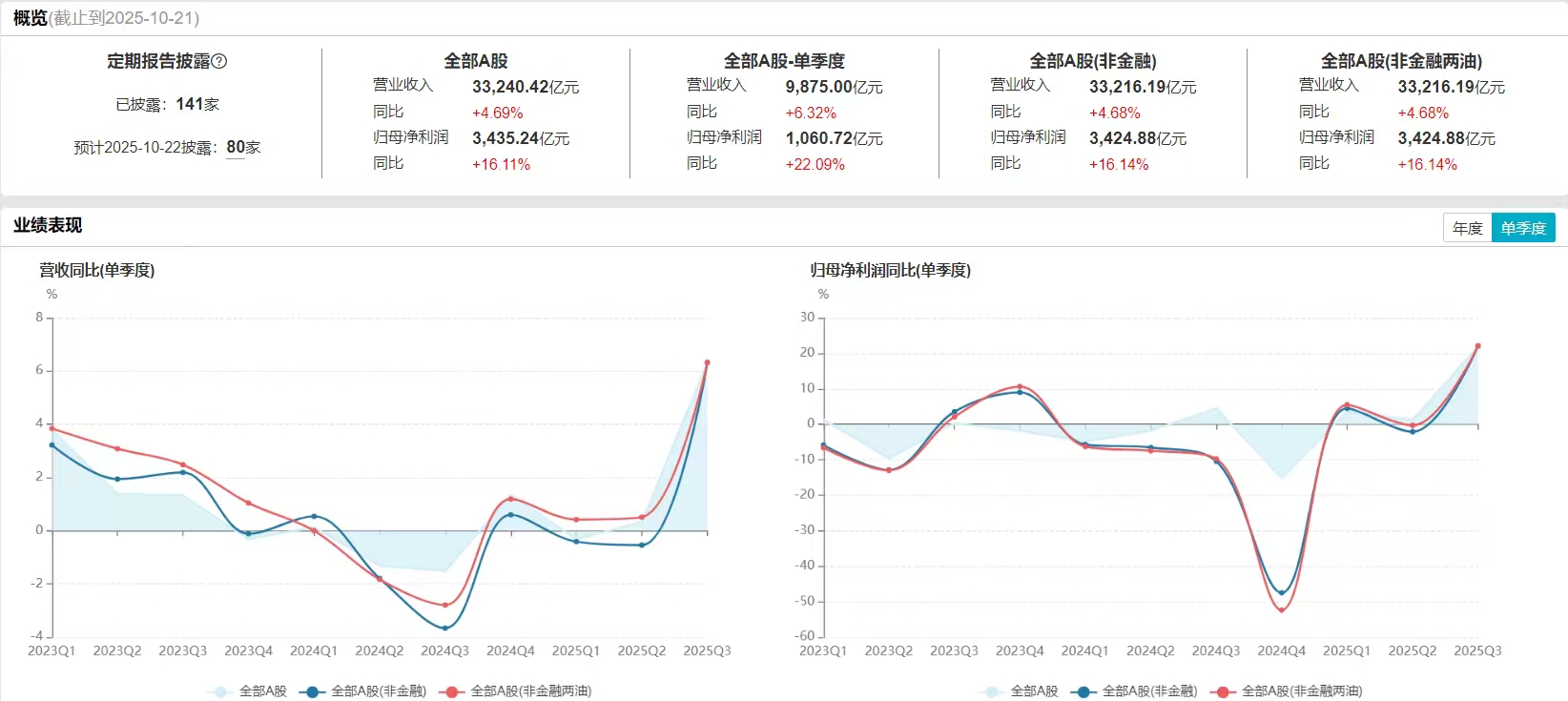 这是截止10月21日已经发布三季报的141家上市公司业绩汇总情况,因样本数少,对