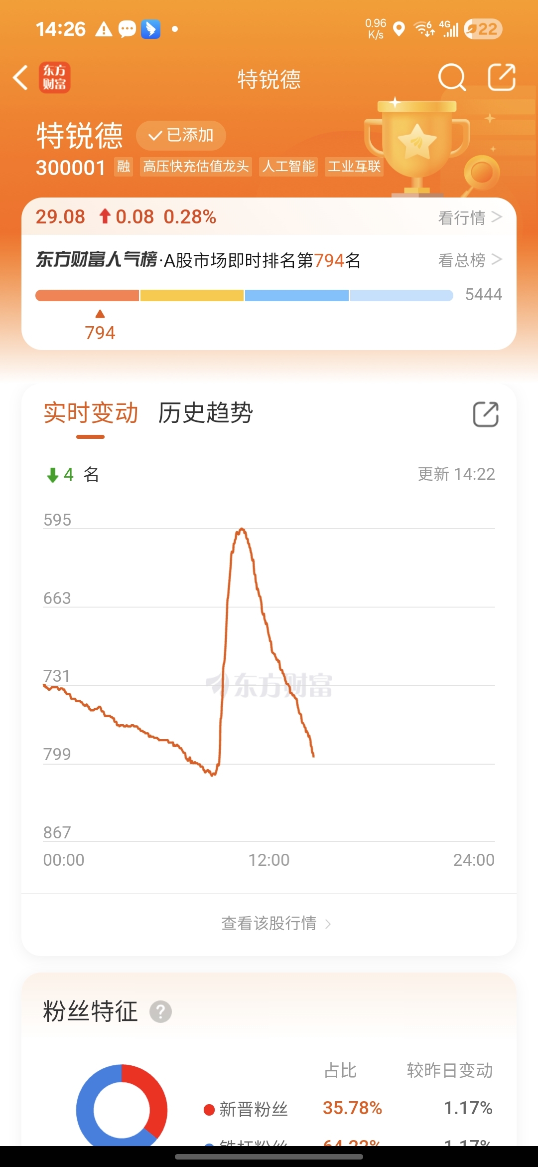 $特锐德(SZ300001)$ 收个缩量止跌红十字,全天主要是小单跟着大盘杀跌跑路。严重洗傻。人气也随着股价跌,回到了开盘前。不出意外,这个周末人气将降到1000以下。从这两点看是洗盘。黄雀在想,下周如果高开怎么办?这些丢掉的人头是不是又要蜂拥而至?这轮牛市的新手很躁郁,仨瓜俩枣卖飞,三枣两瓜也割。搞的庄老爷想赚钱都难。30以下买都是抄底。上2周庄老爷31都买了几个亿!