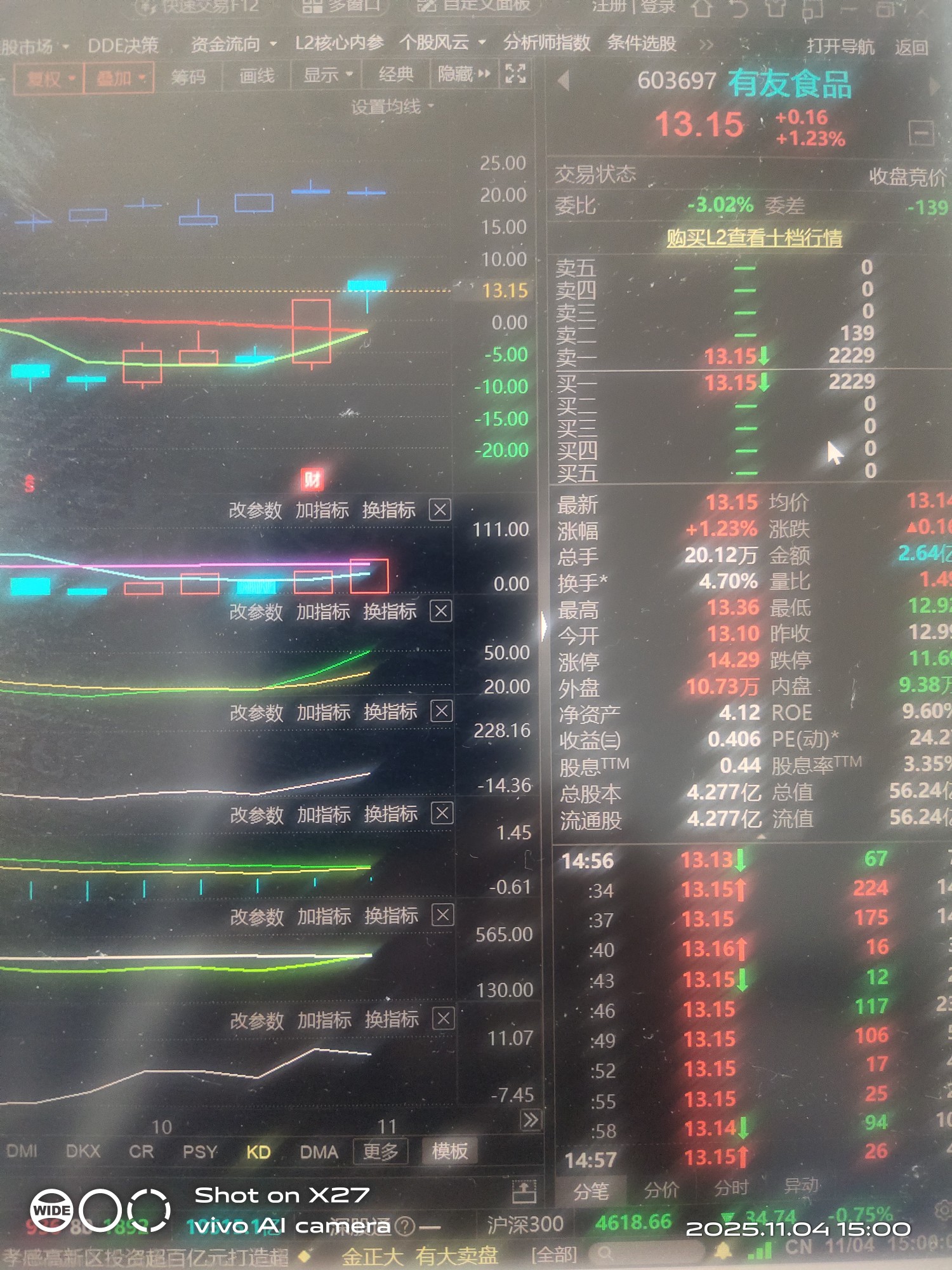 图为回复淅江网友提问。有友食品5周线与21周钱刚金叉,这是买入提示,目前股价在5