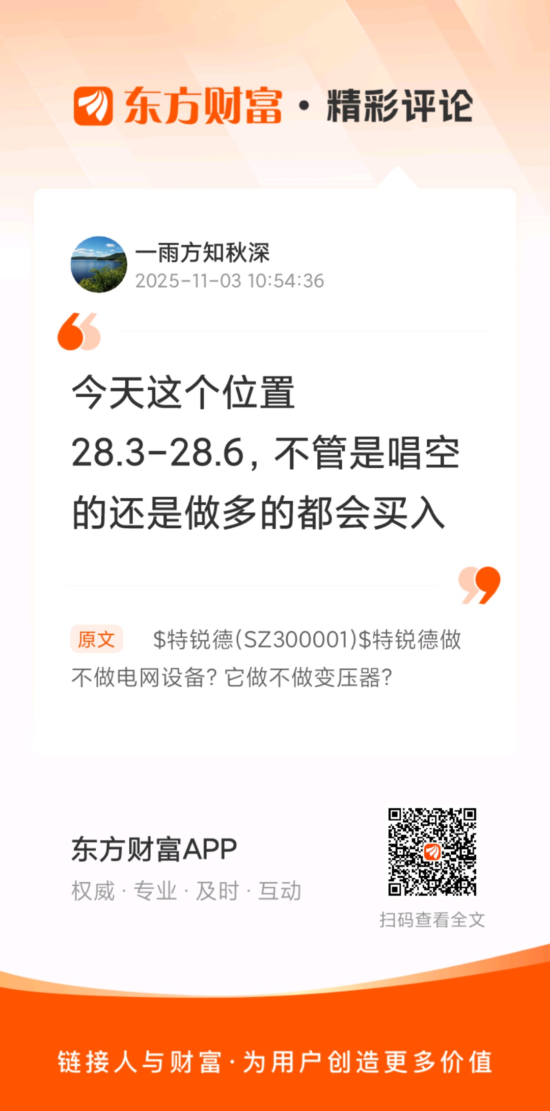 特锐德大概率迎来主升浪//@一雨方知秋深 :今天这个位置28.3-28.6,不管是唱空的还是做多的都会买入