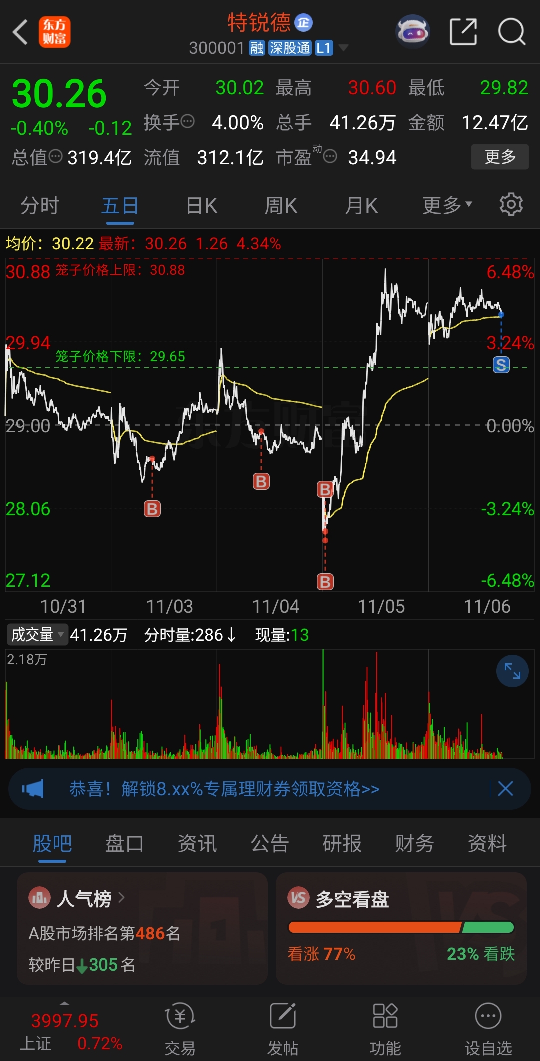 $特锐德(SZ300001)$ 该T不T,必遭驴踢!又成功出去不是嘛