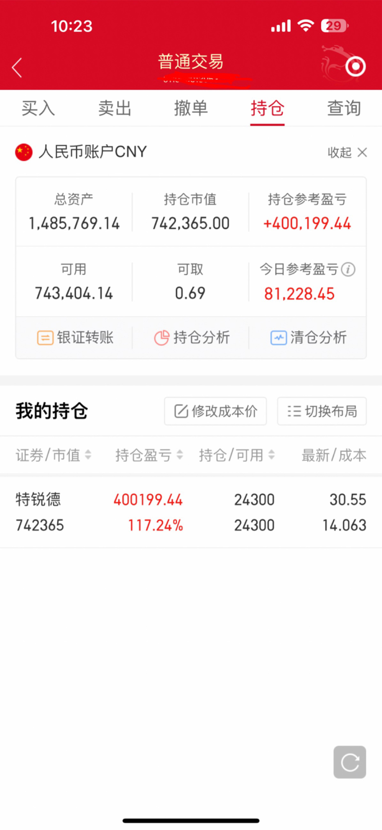 3天前补了一个满仓,跌了3天,以为会调整了,特锐德这几年没有让我失望,补的仓位落