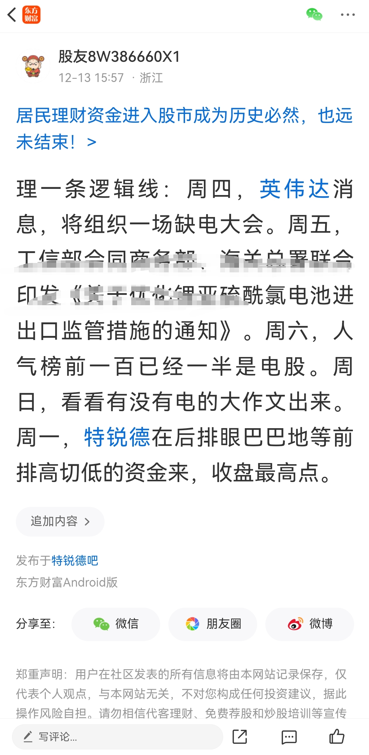 温馨提示: 1.根据《证券法》规定,禁止编造、传播虚假信息或者误导性信息,扰乱证券市场;2.用户在本社区发表的所有资料、言论等仅代表个人观点,与本网站立场无关,不对您构成任何投资建议。用户应基于自己的独立判断,自行决定证券投资并承担相应风险。《东方财富社区管理规定》
