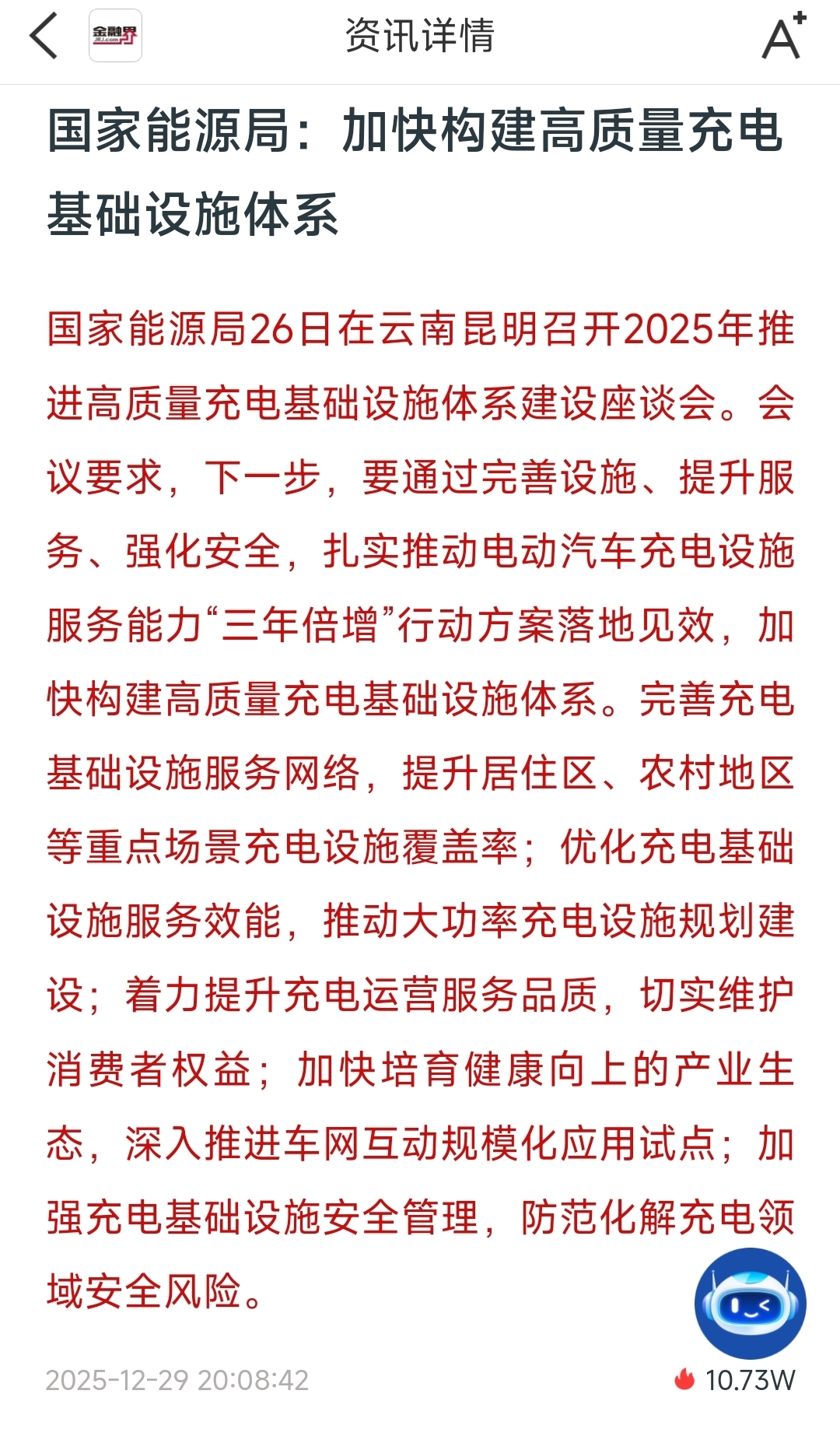 加快构建高质量充电基础设施。