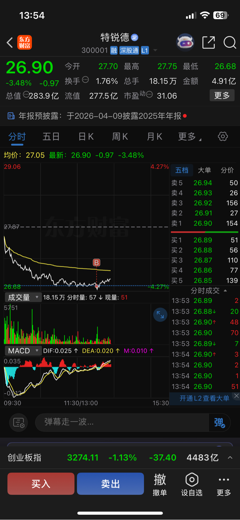 $特锐德(SZ300001)$ 抄到底了,明天开盘就卖
