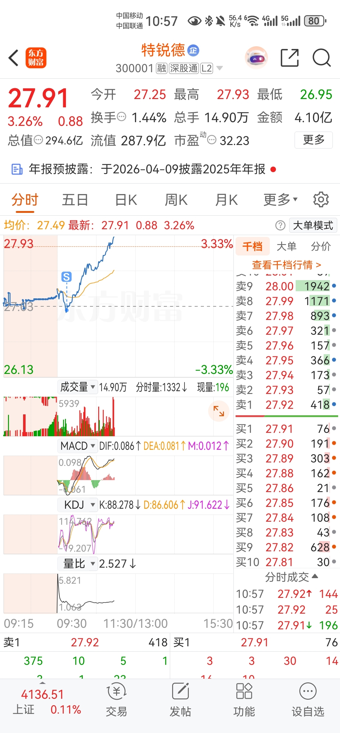 $特锐德(SZ300001)$ 鉴于最近卖什么就起飞什么,我早上看行情不行,特意小卖了200股,尝试触发玄学卖飞体质,果然成功了,一针强心剂下去,直接起飞。