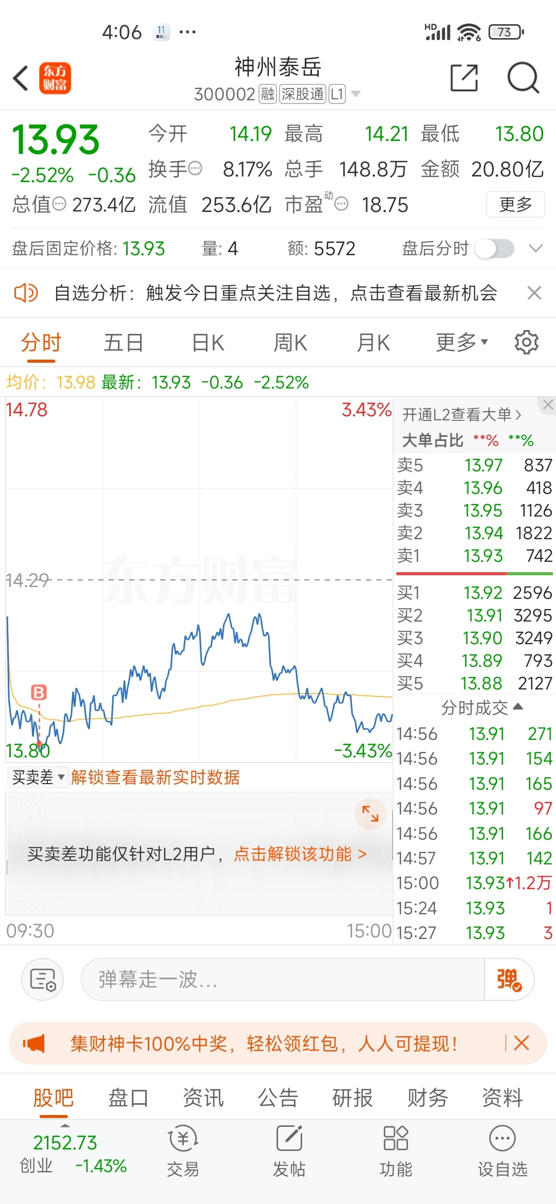 $神州泰岳(SZ300002)$ #炒股日记# #强势机会#