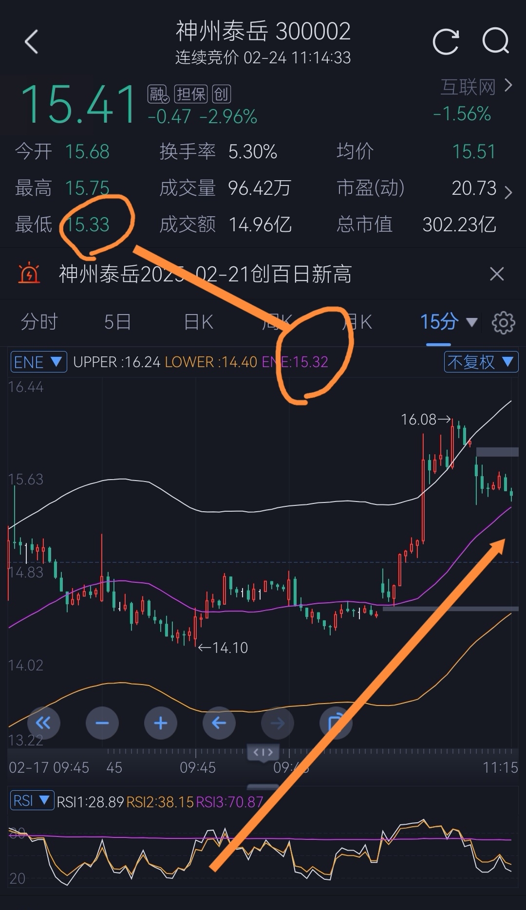 $神州泰岳(SZ300002)$ 15.33元就是全天最低点