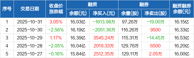 神州泰岳:融资净偿还1613.98万元,融资余额16.03亿元(10-31)