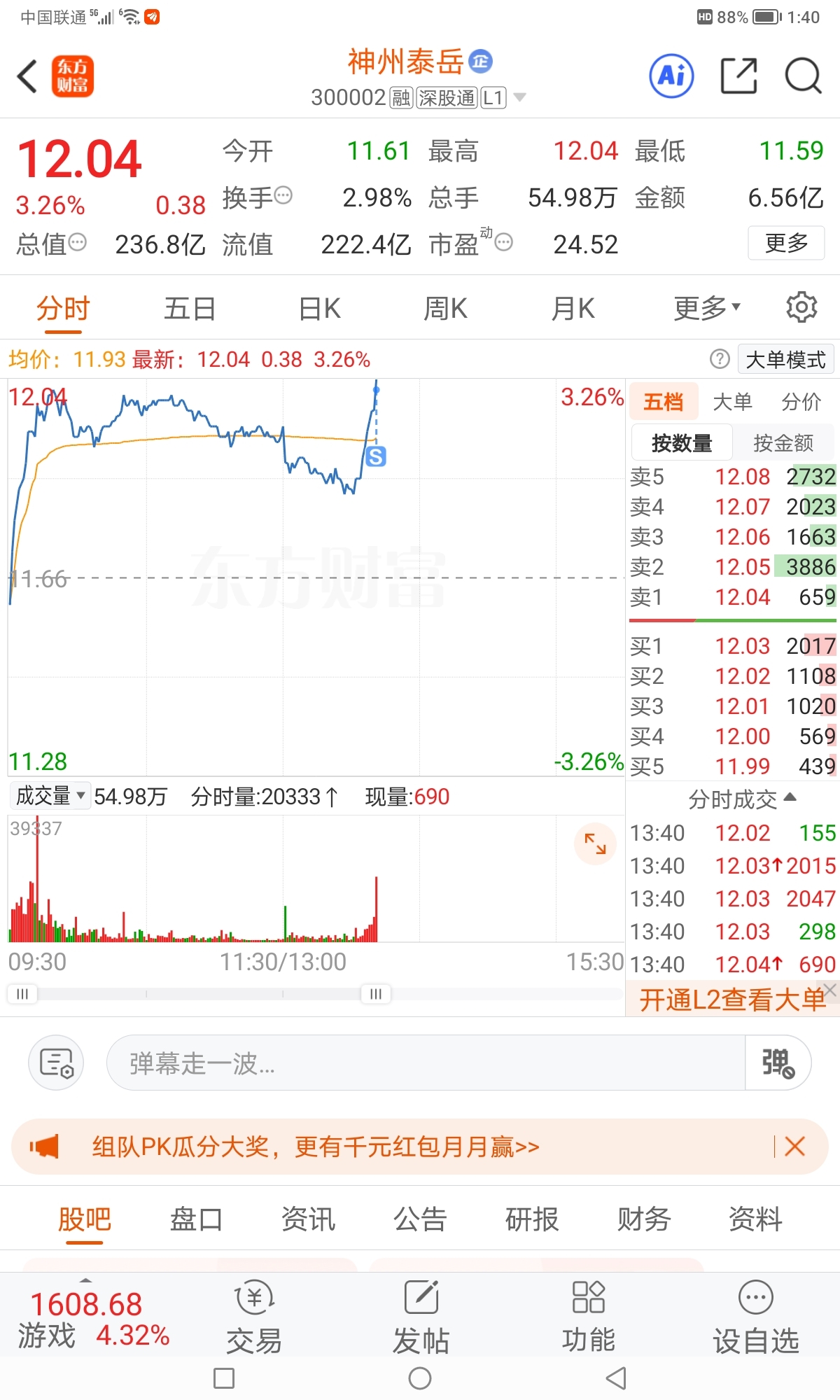 $神州泰岳(SZ300002)$ 昨天卖出,看来是正确的,没有卖飞