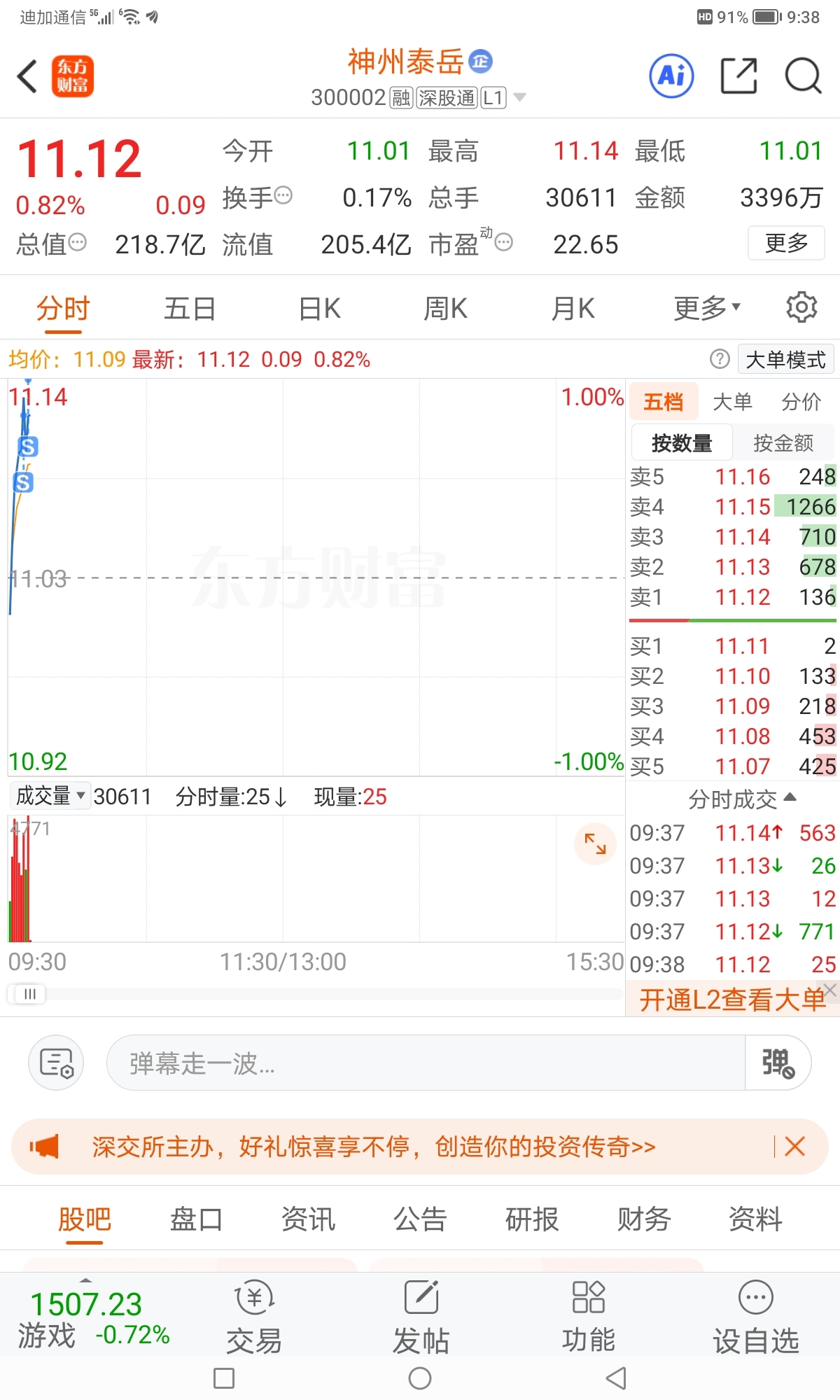$神州泰岳(SZ300002)$ 分两笔居然都成交卖出了,是禧是优