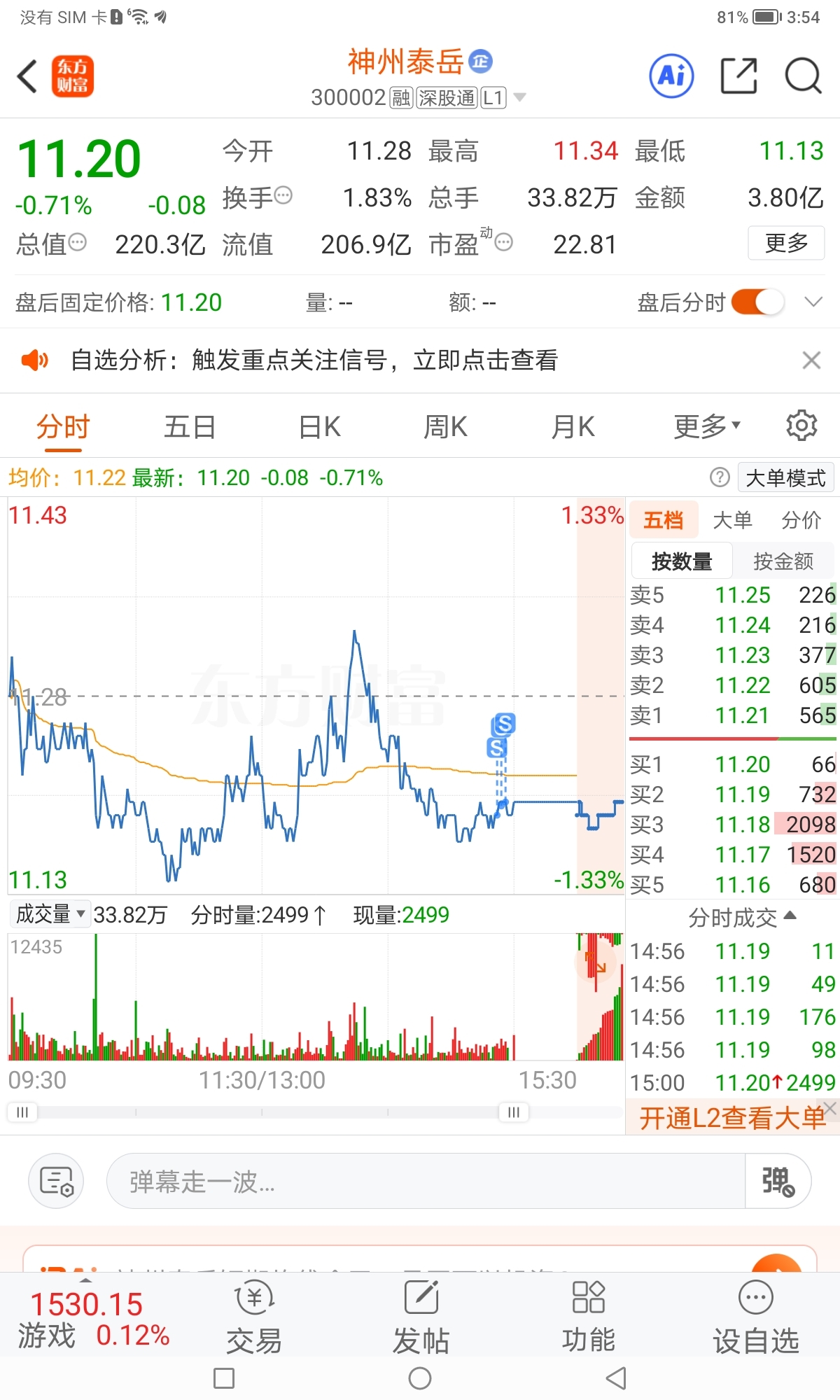 $神州泰岳(SZ300002)$ 什么情况,难道昨天卖飞了