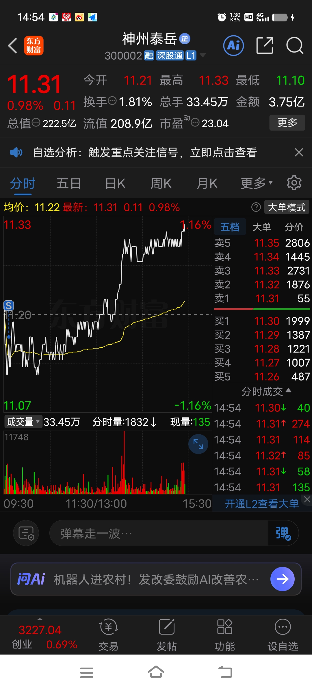 $神州泰岳(SZ300002)$ 一割肉就涨了