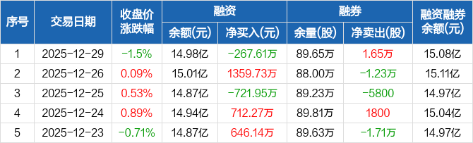 神州泰岳:融资净偿还267.61万元,融资余额14.98亿元(12-29)