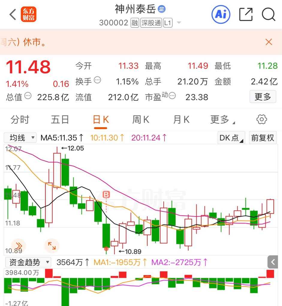 $神州泰岳(SZ300002)$ 加油,快涨1块钱了