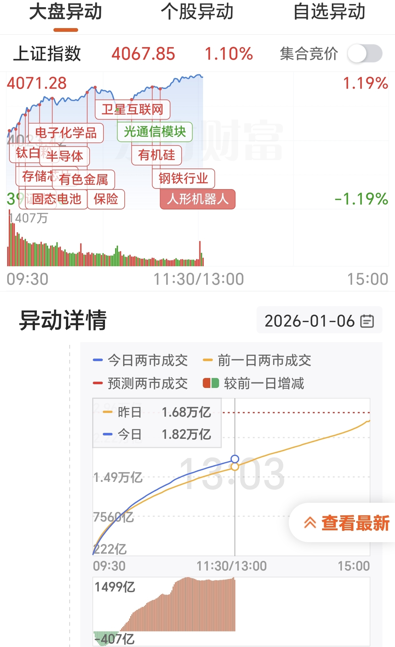 目前两市成交已经超过1.82万亿,比昨日大幅增加1400亿。所谓量在价先,期待板