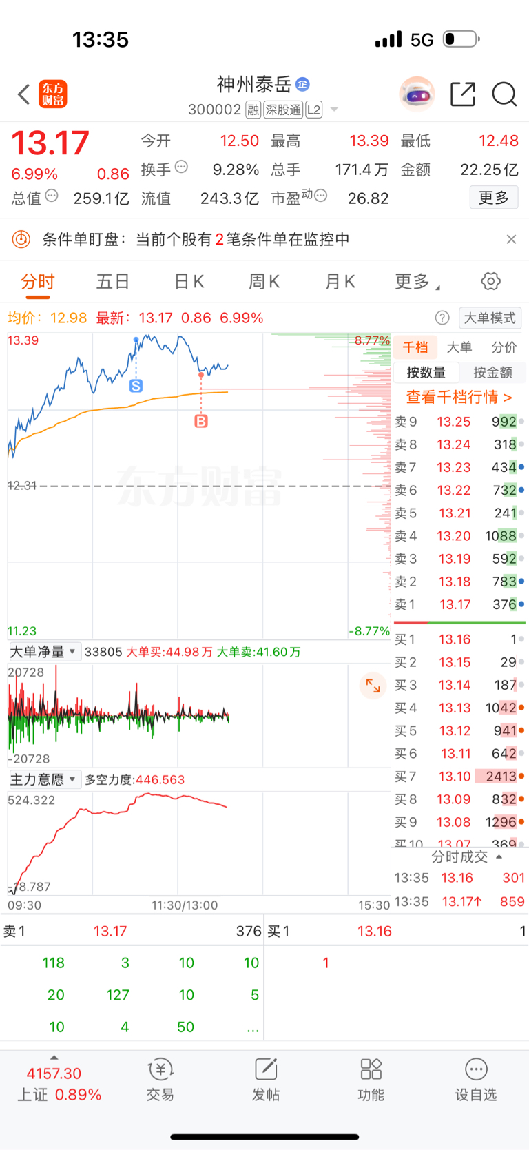 $神州泰岳(SZ300002)$ 只是随便一买就止住了下跌,真没意思