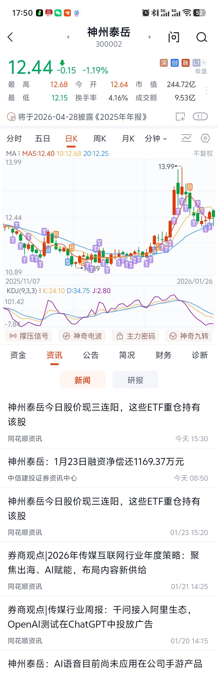 $神州泰岳(SZ300002)$ 几乎近一段时交易日丅,从15.15到现在的成本10.5元。