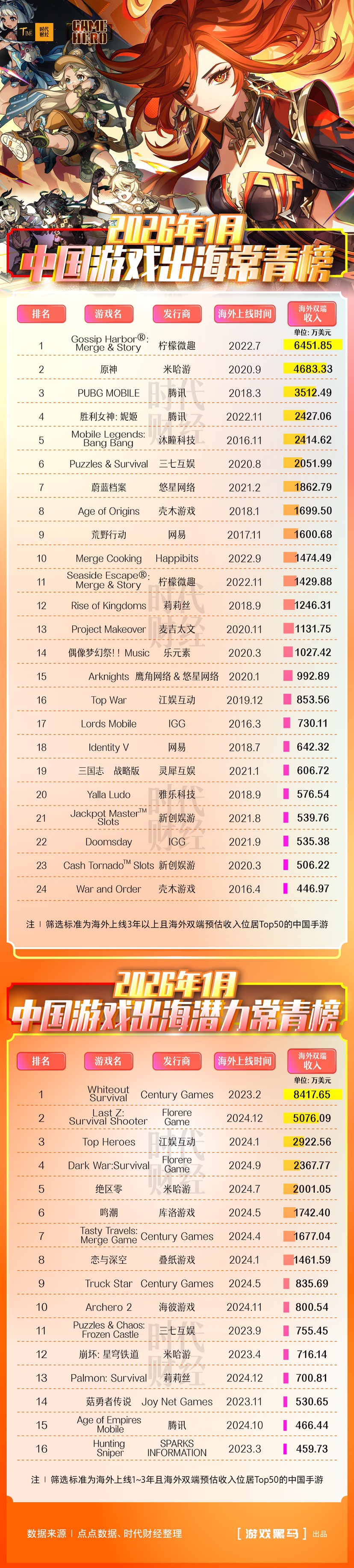 $神州泰岳(SZ300002)$ 1月壳木两个老游戏流水比以往靠后了好几名了