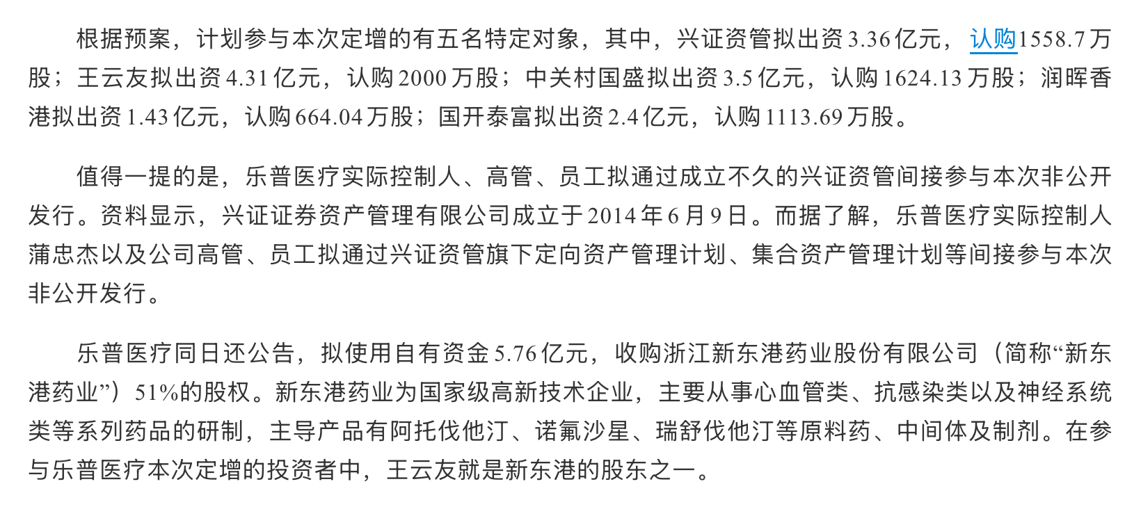 $乐普医疗(SZ300003)$ 乐普王云友原来如此