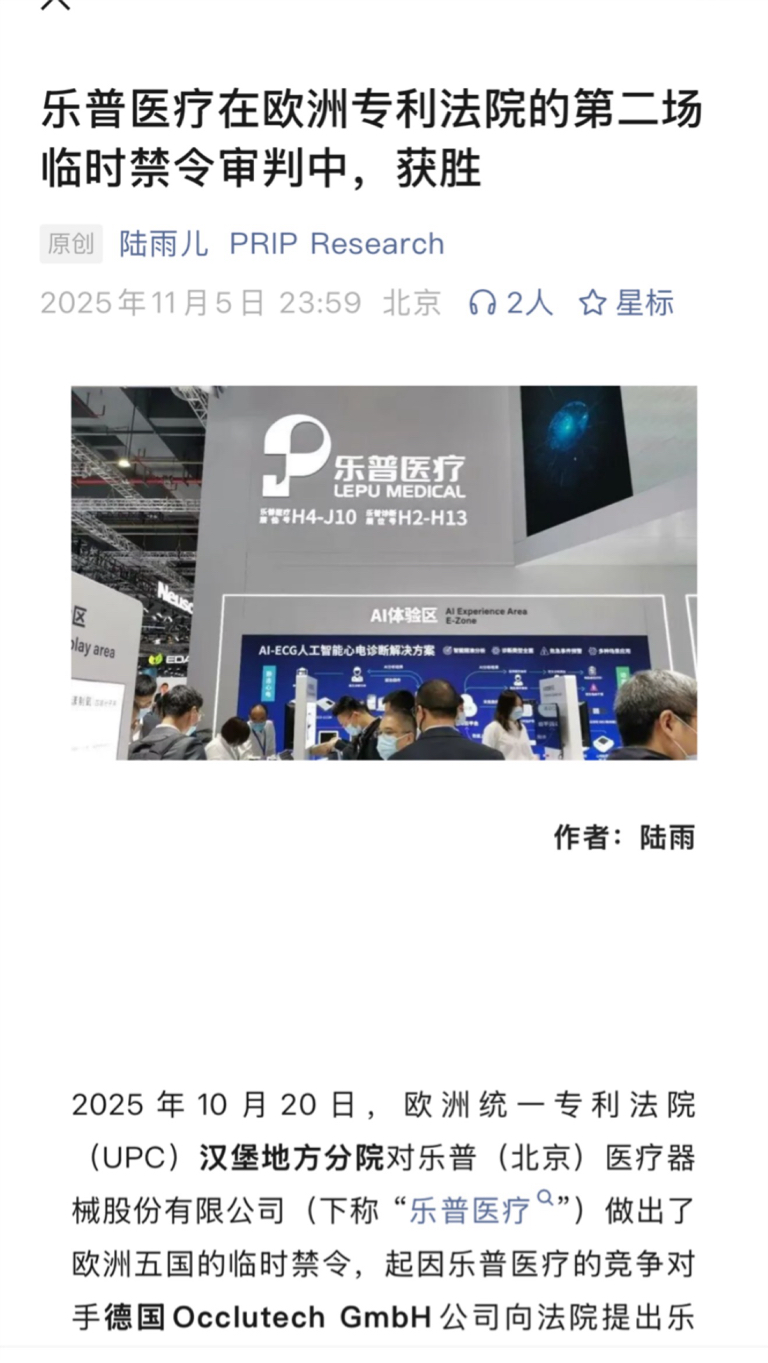 $乐普医疗(SZ300003)$ 海外案件反转了吗?