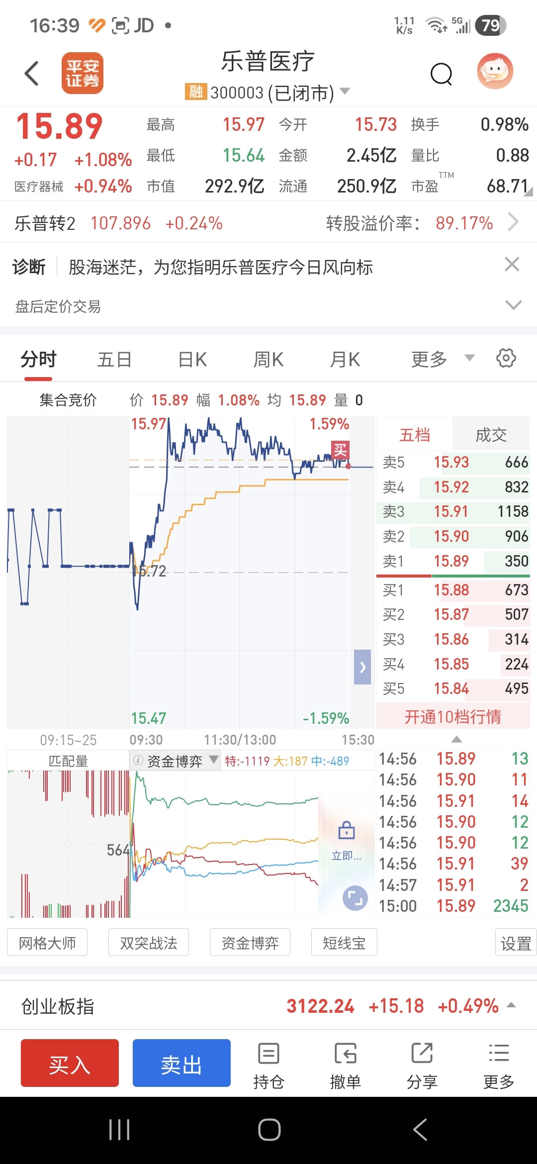 $乐普医疗(SZ300003)$ 尾盘买了点乐普