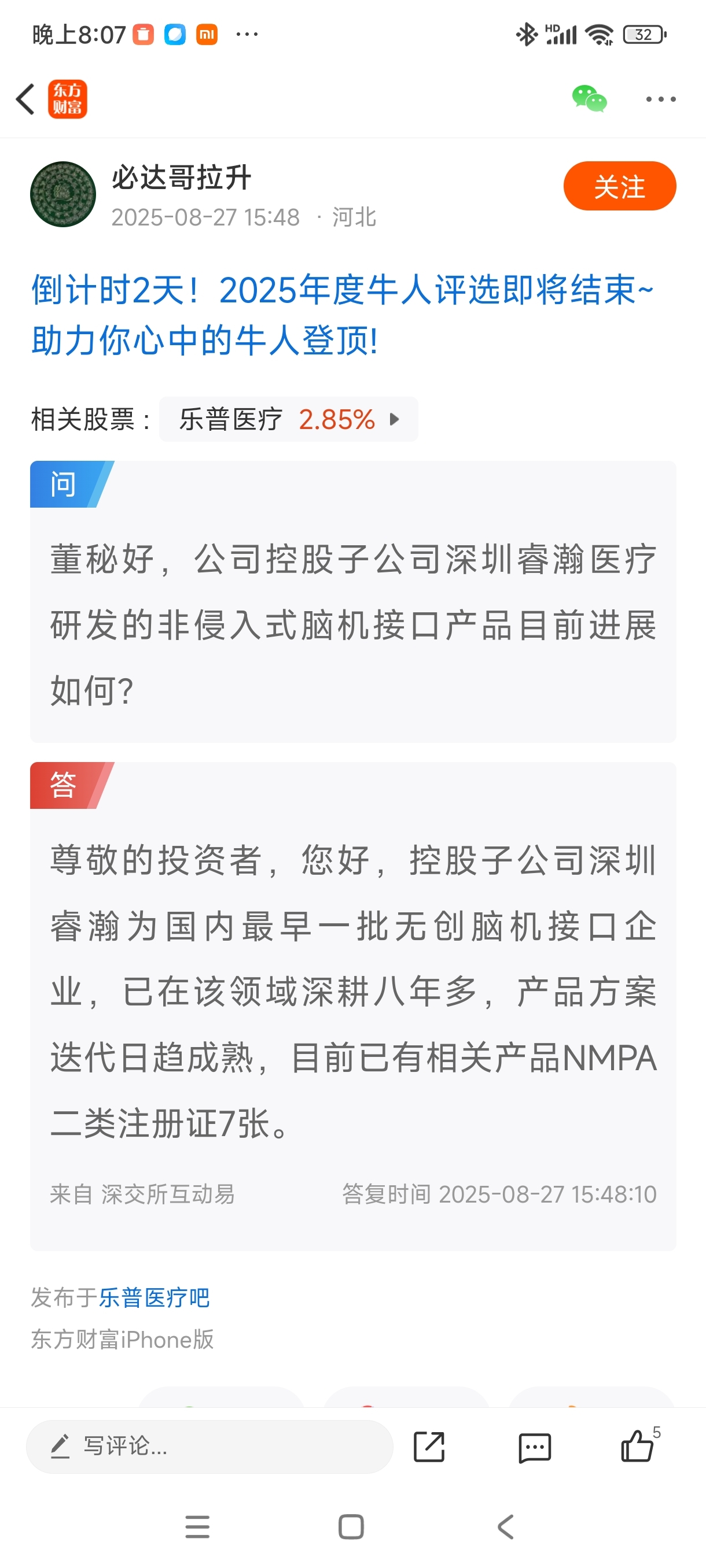 $乐普医疗(SZ300003)$ 东方财富财富写最正宗,董秘也回复了,就是这样砬冀