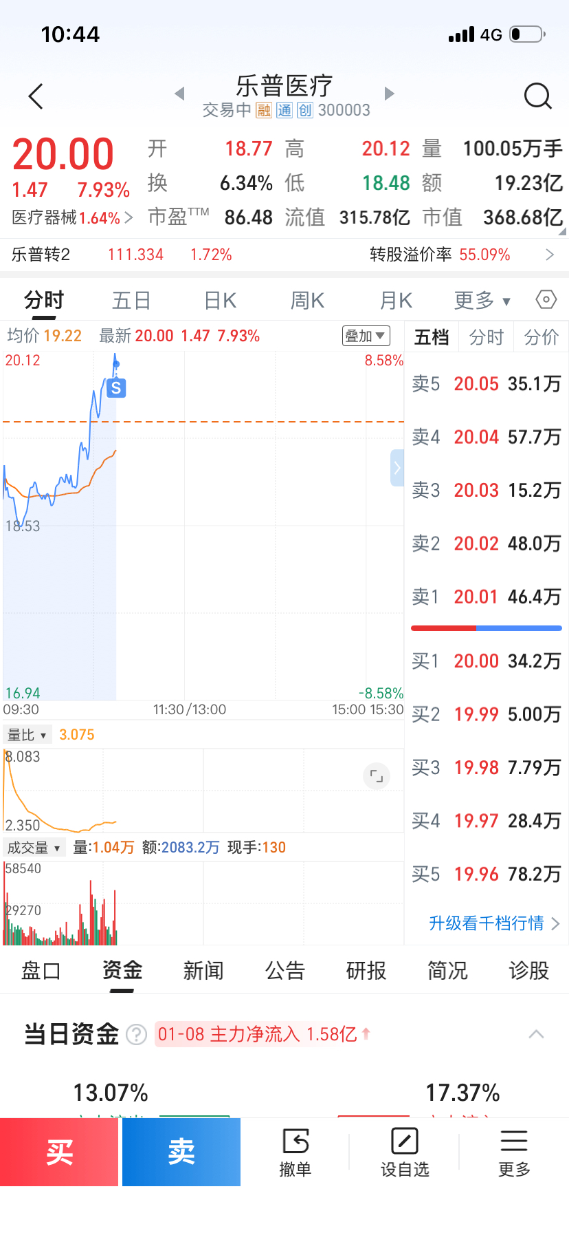 $乐普医疗(SZ300003)$ 赚钱我就先卖,跌下来我在来吧