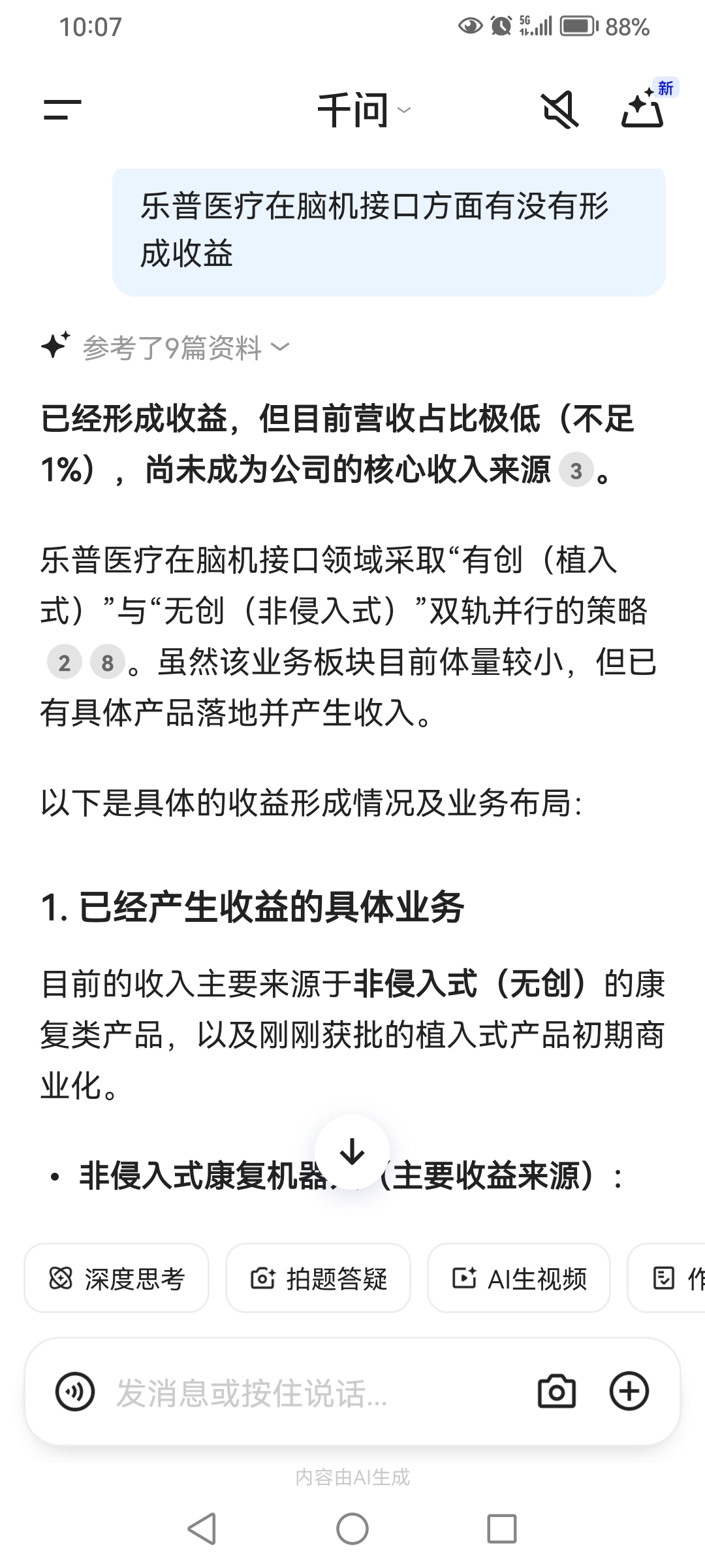 $乐普医疗(SZ300003)$ 在脑机接口方面已经形成收益了