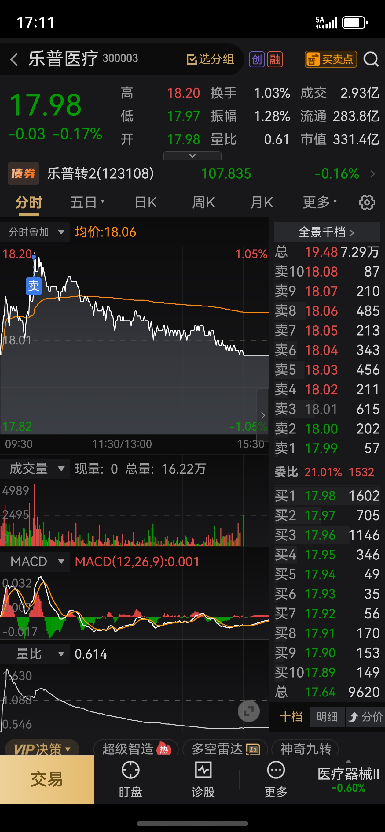 有那么多人都不看好乐普,所以听劝走了。明天可以涨了!再次申明我不是托哈!