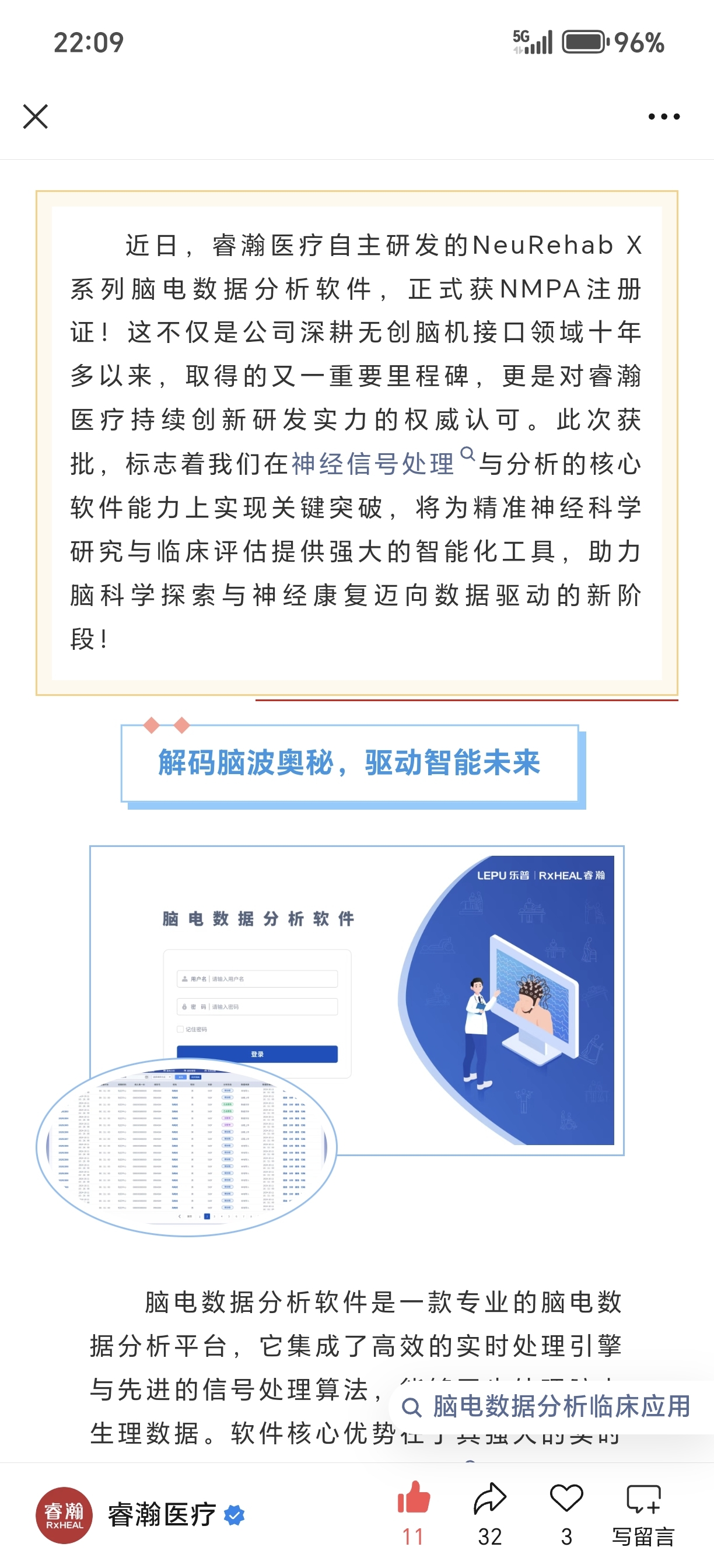 睿瀚医疗脑机接口软件获批