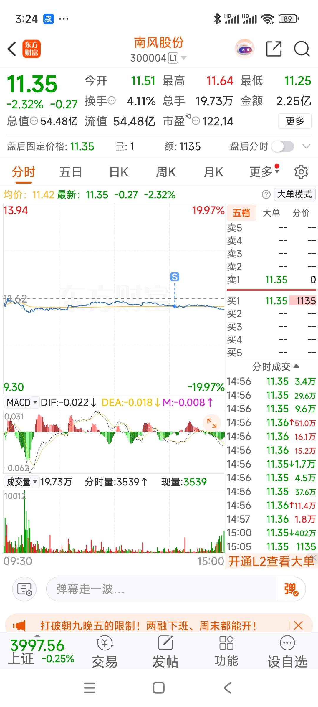 $南风股份(SZ300004)$ 清了,亏一万,解脱了!