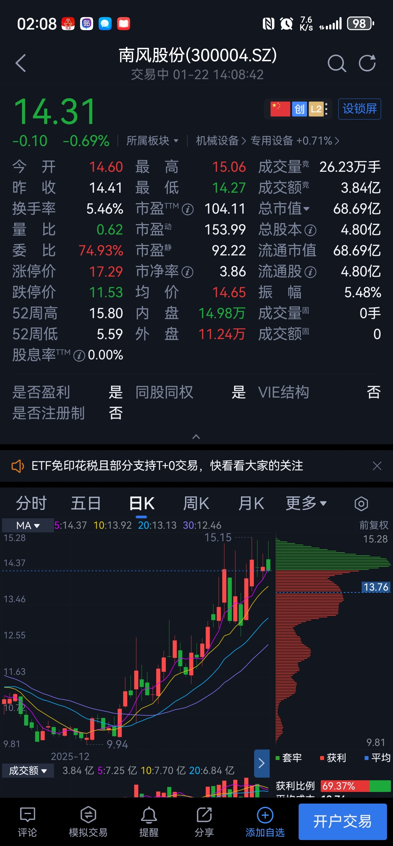$南风股份(SZ300004)$