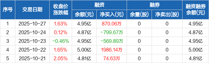 探路者:融资净买入870.06万元,融资余额4.95亿元(10-27)