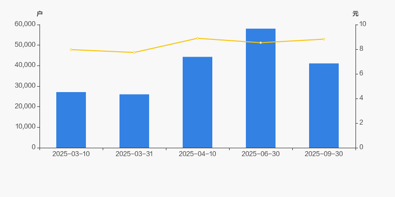 2025年3月10日至今,公司股东户数显著大幅增长,区间涨幅达51.58%。2025年3月10日至2025年9月30日区间股价上涨10.65%。