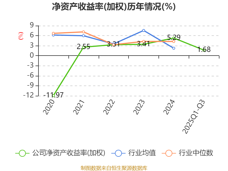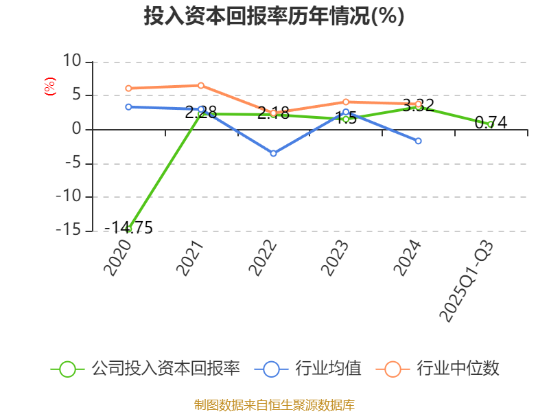 盈利能力方面, 2025年前三季度公司加权平均净资产收益率为1.68%,同比下降3.3个百分点。公司2025年前三季度投入资本回报率为0.74%,较上年同期下降3个百分点。