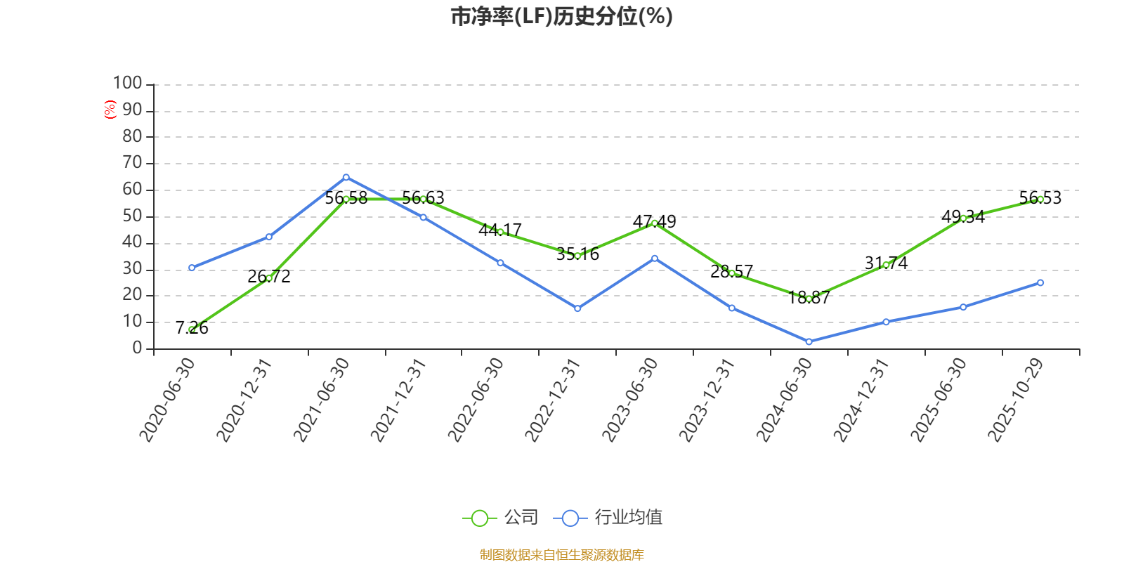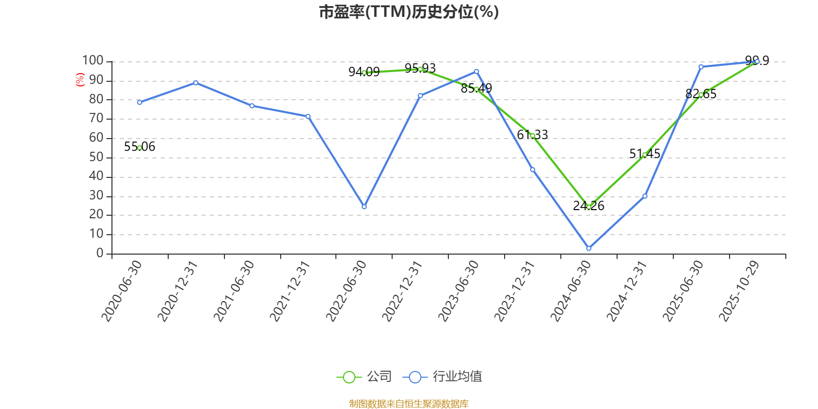 市盈率、市净率为负时,不显示当期分位数,会导致折线图中断。