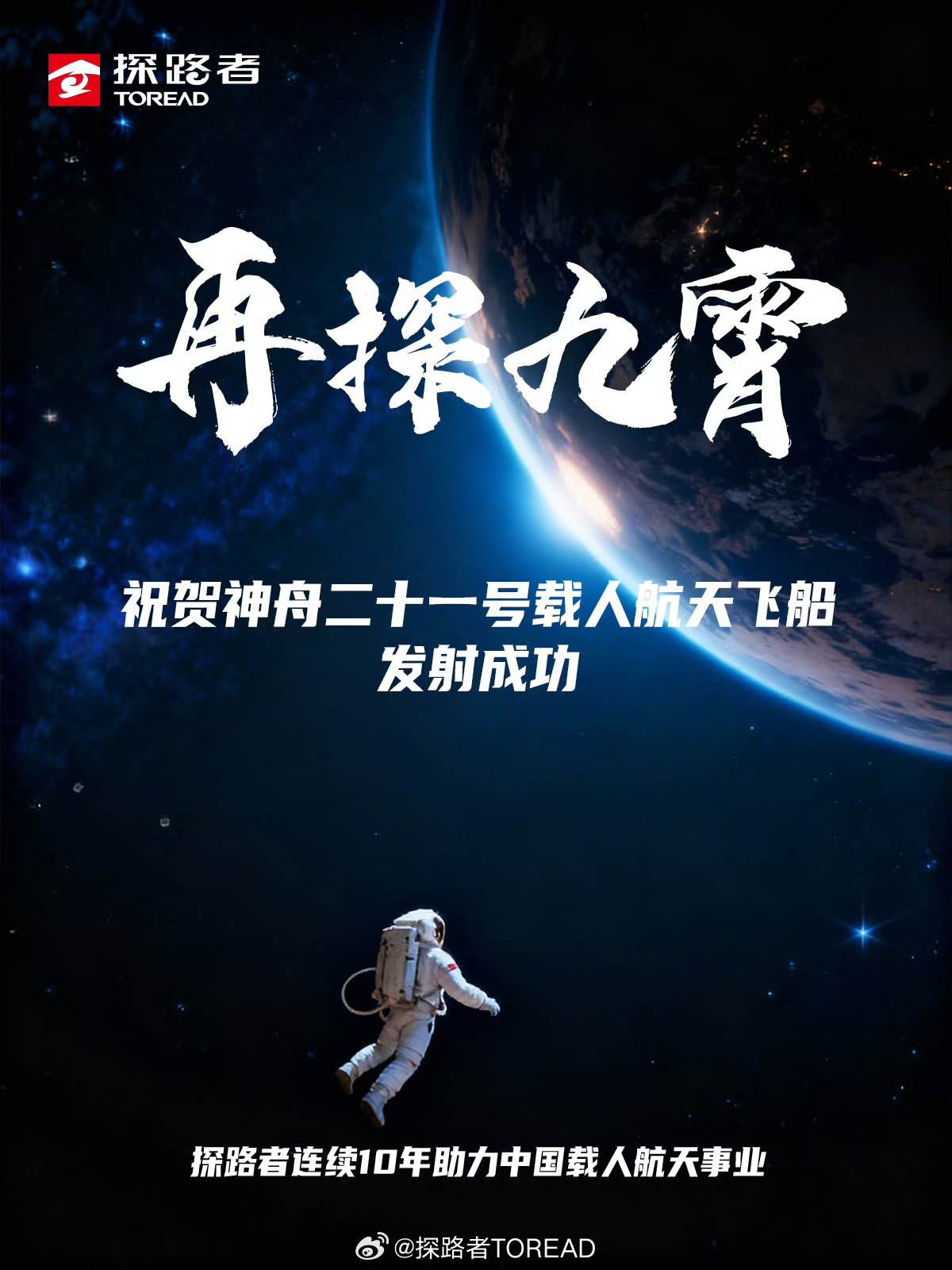 再探九霄启新程探路者连续10年助力中国载人航天事业热烈祝贺神舟二十一号载人航天飞