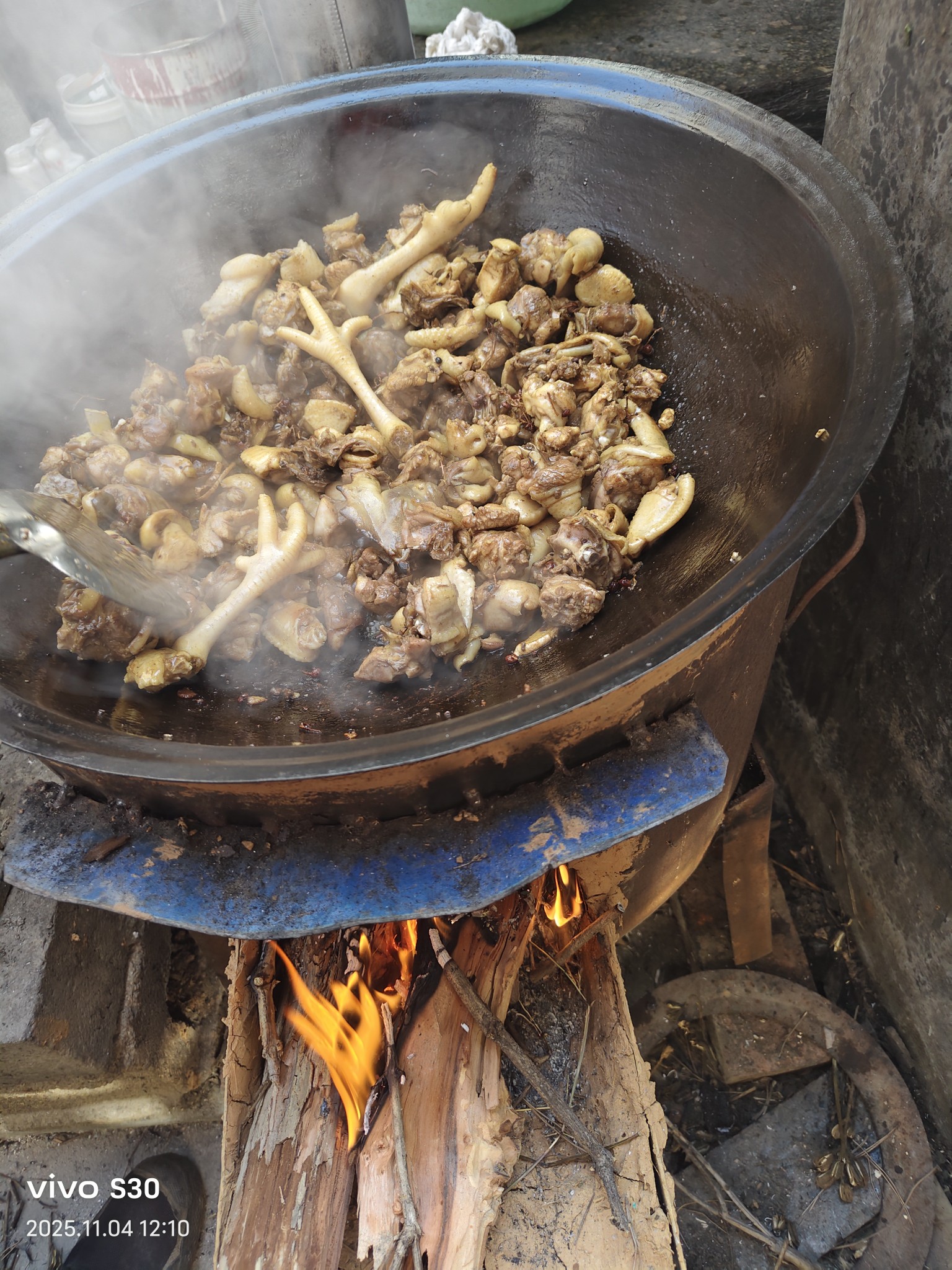 ,早晨看着涨的好,激动的我回老家把我老妈养的这三腿鸡炖了,我这鸡快熟了,