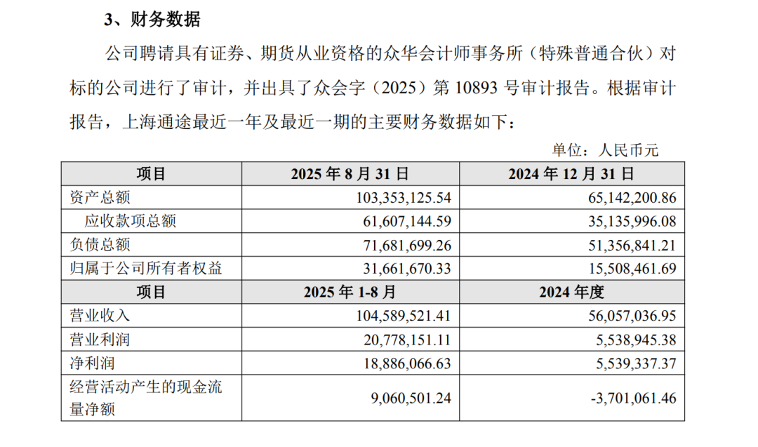 从公告披露的内容来看,贝特莱和上海通途均在细分行业内拥有一定影响力,且在2025年前8个月均已实现盈利。