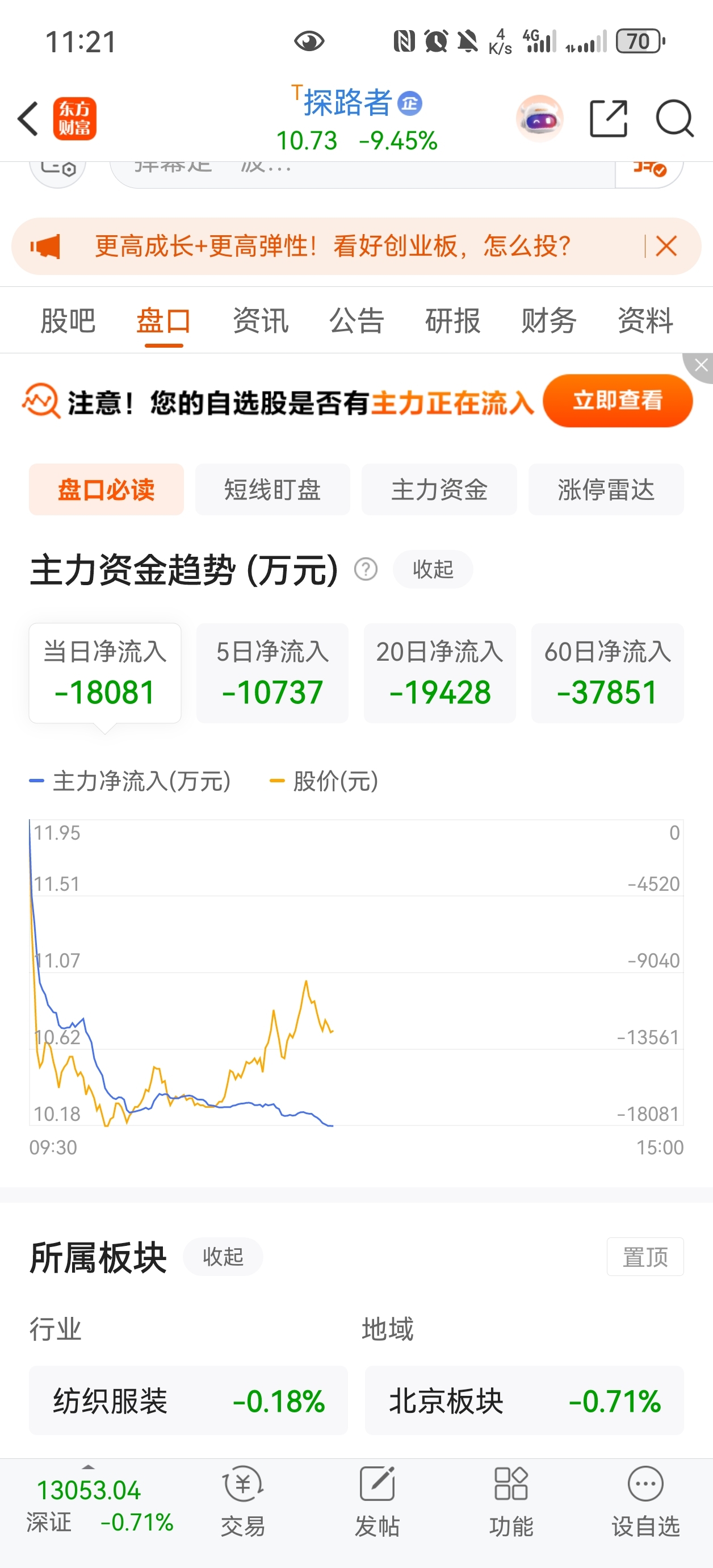 $探路者(SZ300005)$ 能跑就跑吧,下午大概率跌回去!
