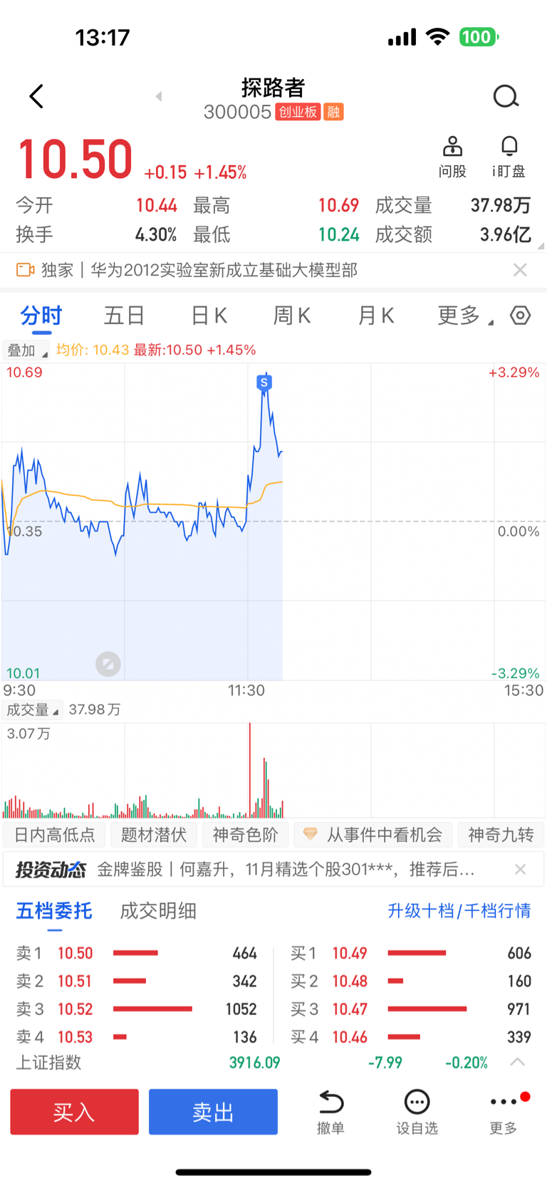 $探路者(SZ300005)$ 又成功做了个T