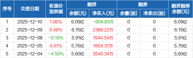 探路者:融资净偿还604.83万元,融资余额6.09亿元(12-10)